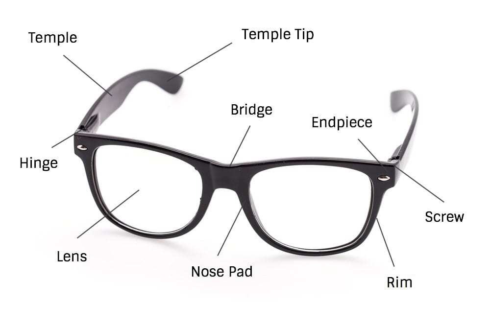1) What components make up a pair of glasses?